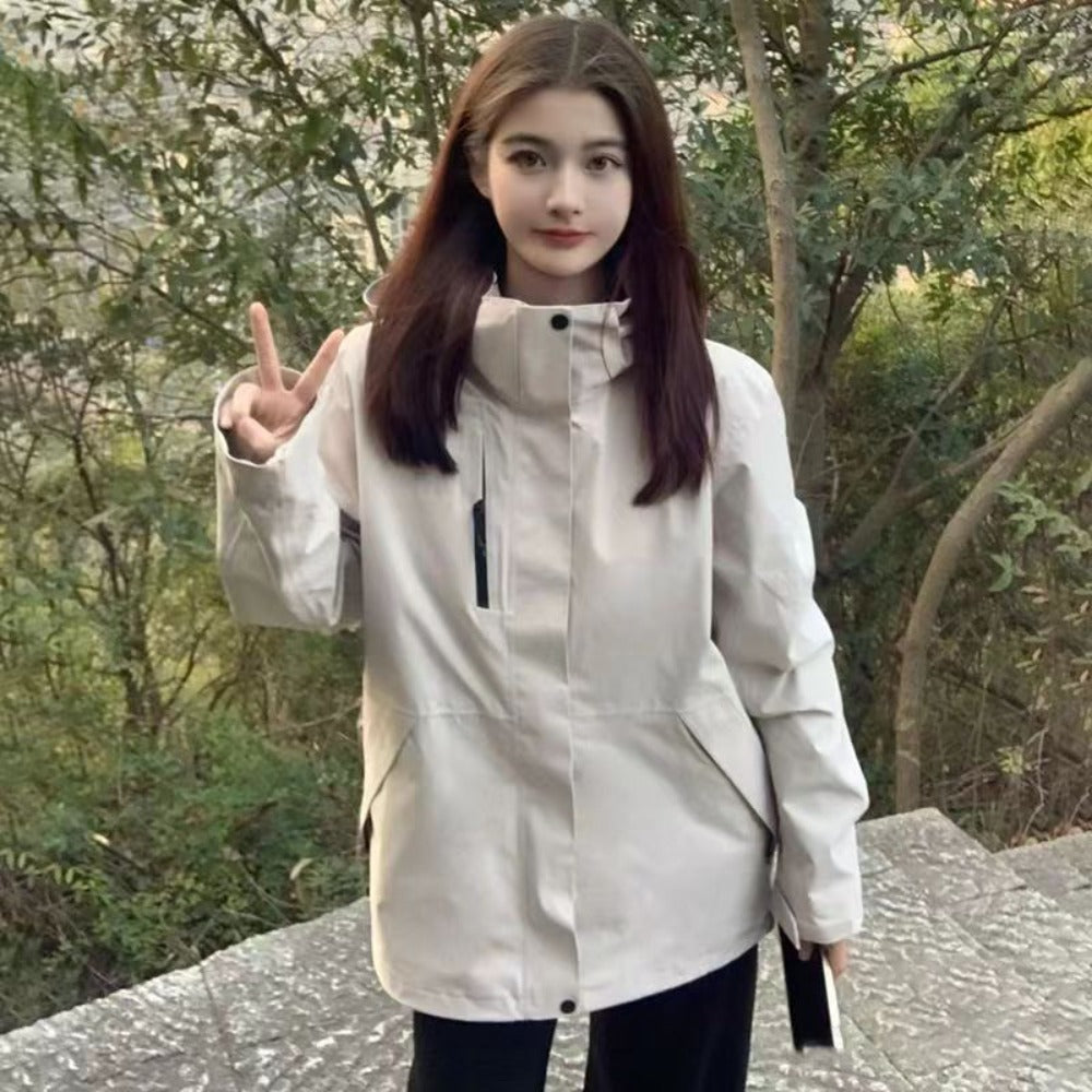 High Neck Zipper Jacket with Pockets for Women - Federica