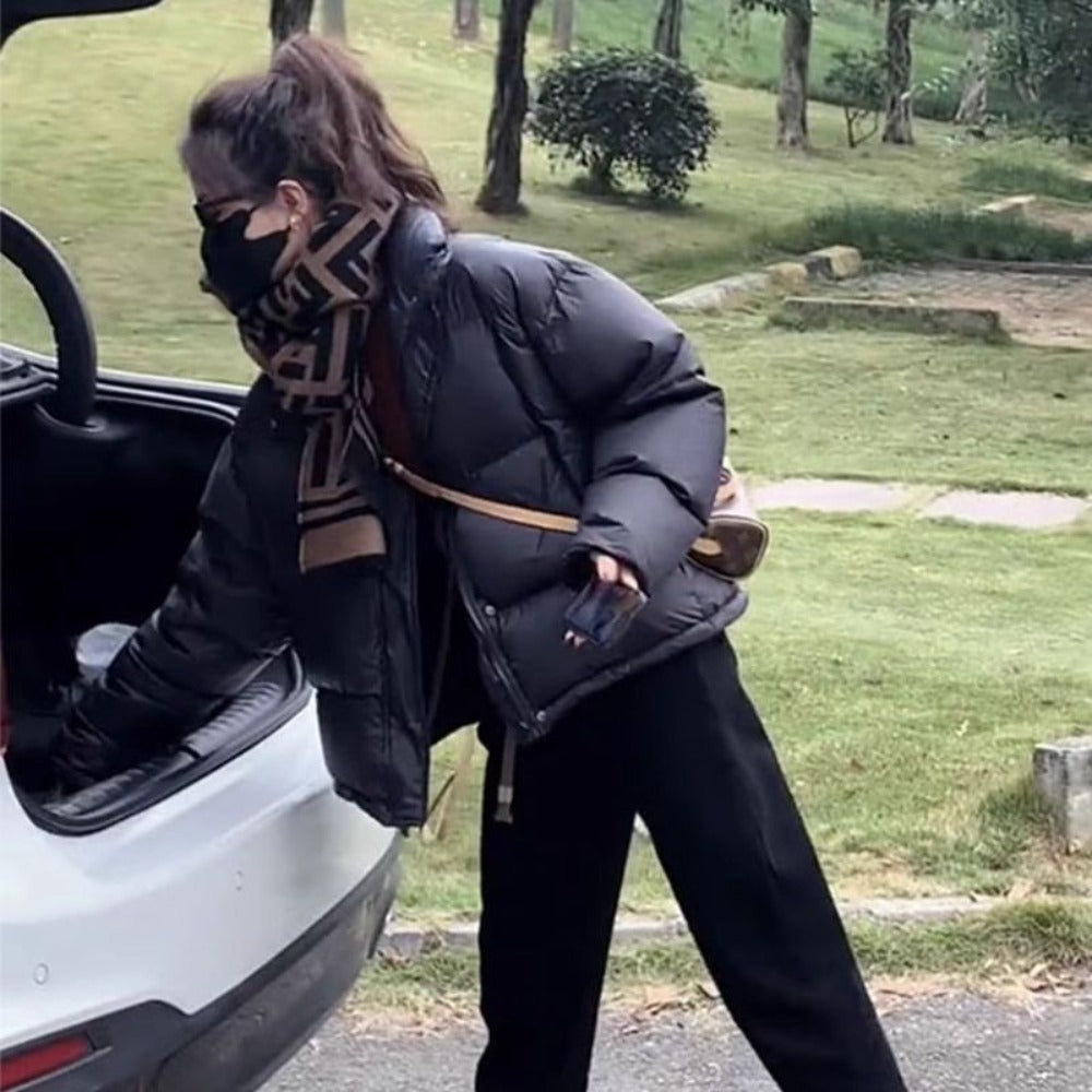 Puffer Jacket with Checkered Collar for Women - Caterina