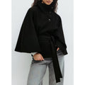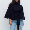 Wrap yourself in timeless sophistication with this camel belted cape coat for women. Featuring a high collar and wide sleeves, this coat combines style with comfort, making it a versatile addition to your outerwear collection.