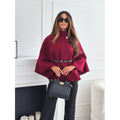 Belted Cape Coat with Wide Sleeves for Women - Zita