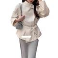 Belted High Neck Jacket with Wide Sleeves for Women - Fortunata
