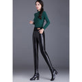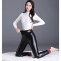 Black Fleece Lined Leggings with High Waistband for Women - Fatima