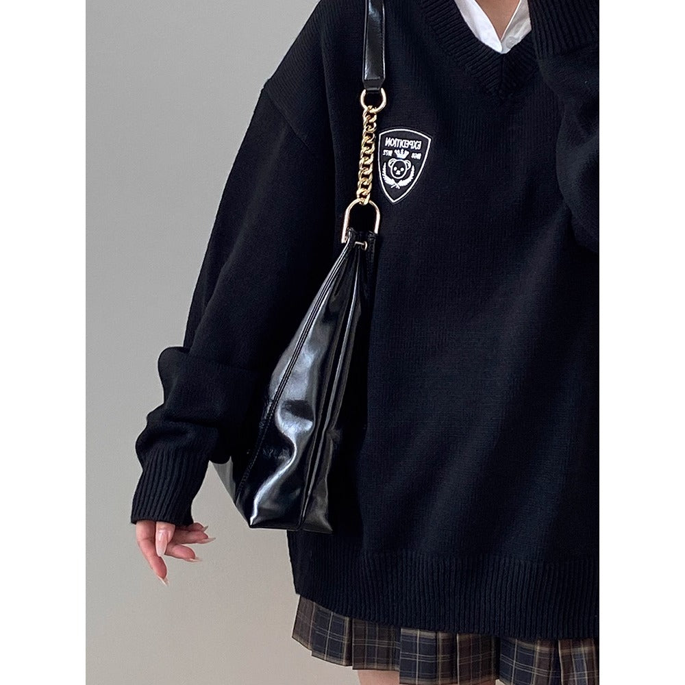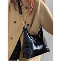 Complete your look with this black leather shoulder bag with gold chain strap for women. Combining functionality with a stylish touch, it offers the perfect balance of practicality and modern design.