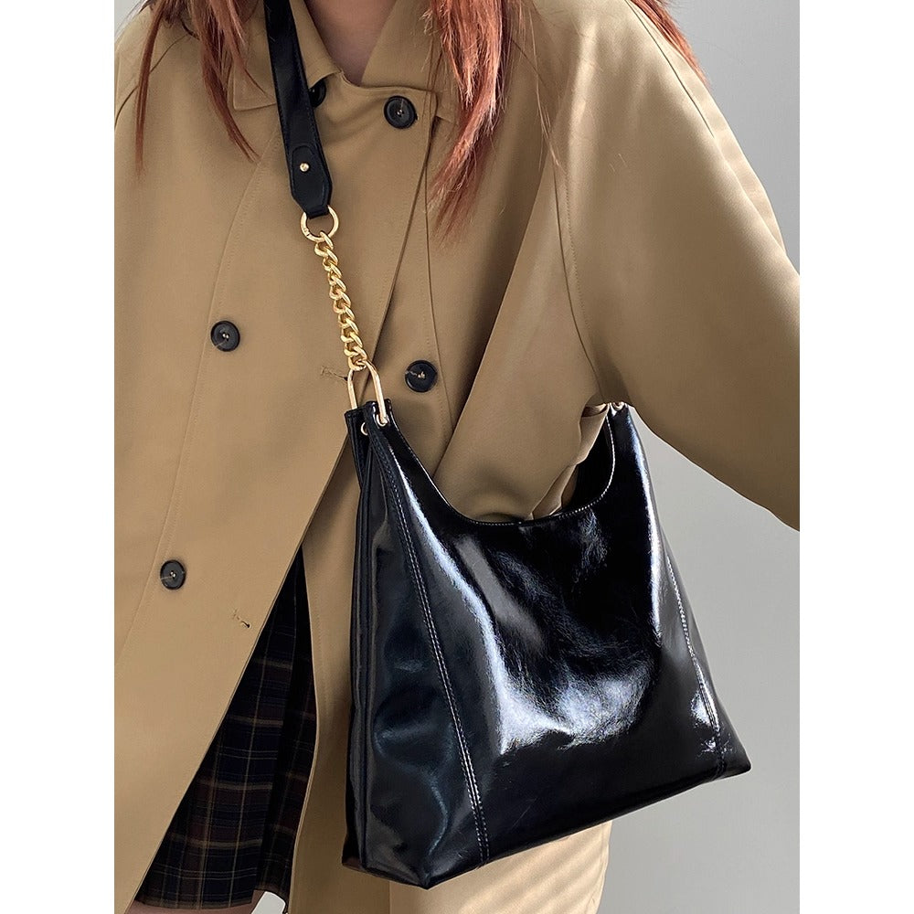 Gold Chain Strap: Adds a chic detail while ensuring sturdy carrying support.