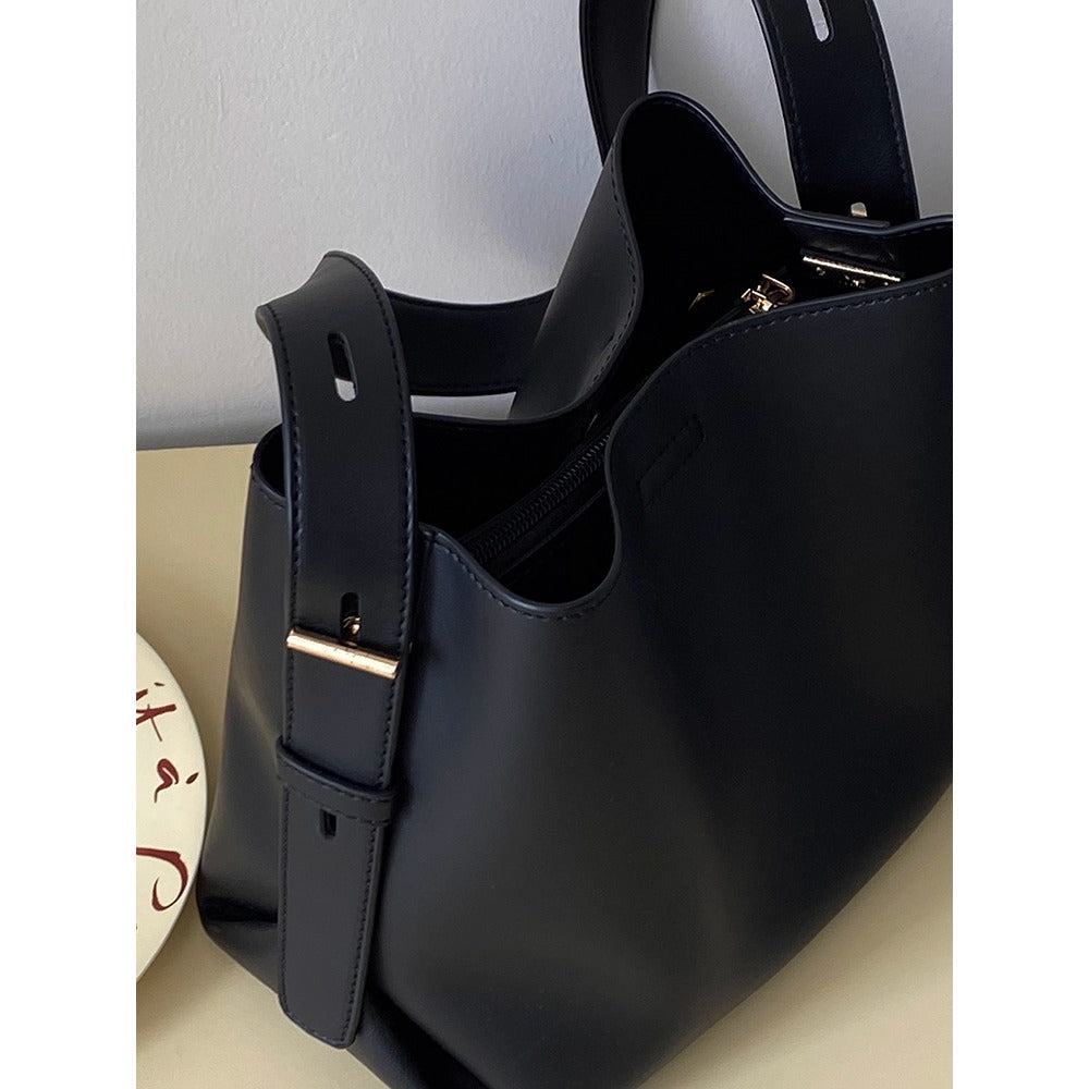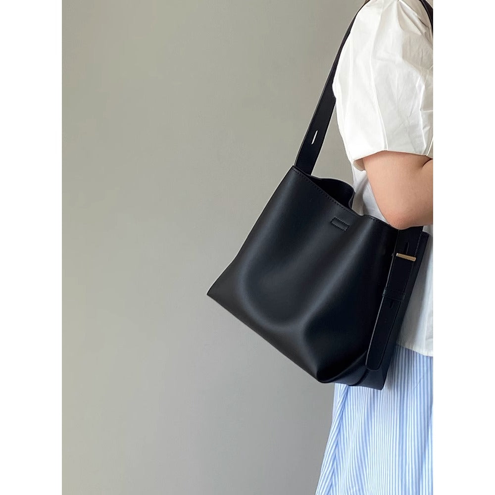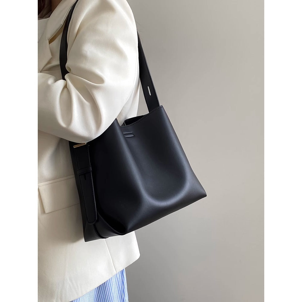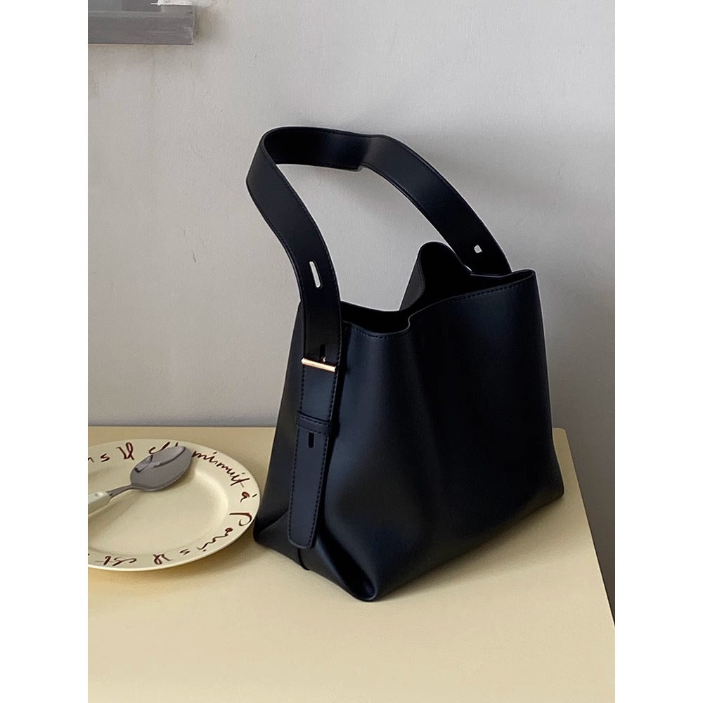 Elevate your everyday look with this black leather shoulder tote bag with adjustable strap for women. Designed for both style and practicality, it offers ample space while maintaining a sleek and modern silhouette.