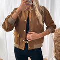Brown Bomber Jacket with Snap Buttons for Women - Santina