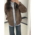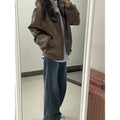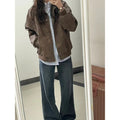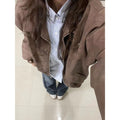 Brown Faux Leather Bomber Jacket with Zipper for Women - Elisa