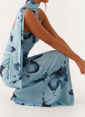 Exclusive Design: Each dress features a one-of-a-kind print placement, making your piece distinct, along with a thick tie-around scarf for added elegance.