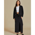 Chic Double-Breasted Design: The jacket features a classic double-breasted structure for a sophisticated, tailored look.