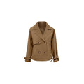 This cropped jacket offers a stylish and contemporary addition to your wardrobe. With its double-breasted design and cinnamon brown color, it brings both warmth and fashion-forward appeal to your everyday look.