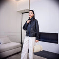 Faux Leather Zip Up Jacket with Pockets for Women - Elide