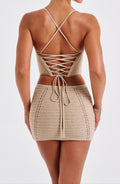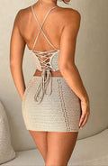 Statement Back: Adjustable lace-up closure and crossover straps create a captivating open-back design that's perfect for sunny occasions