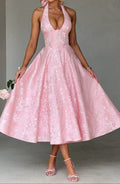 Romantic & Timeless Elegance: Effie is a showstopping dress that combines romance with sophistication. Featuring a plunge halter neckline and a lace-up back, this dress offers a customizable, figure-flattering fit that exudes timeless charm.