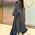 Wrap yourself in cozy comfort with this dark gray long knit hooded cardigan for women. Its relaxed design and soft knit fabric make it a versatile layering piece for everyday wear.