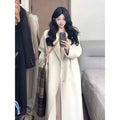 This ivory long wool blend overcoat for women is a timeless piece designed to keep you warm while maintaining a refined look. With its sleek cut and versatile design, it’s perfect for layering over different outfits during the colder months.