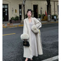 Stay warm and stylish with this beige long wool coat designed with refined details. Featuring soft fur cuffs and a relaxed fit, it combines comfort and timeless appeal, making it a versatile addition to your wardrobe.