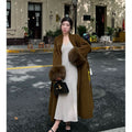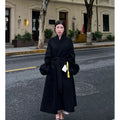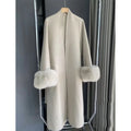 Long Wool Coat with Fur Cuffs for Women - Fortunata