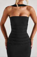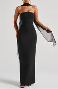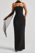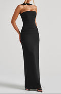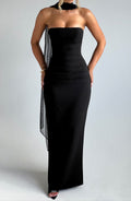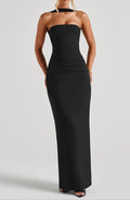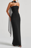 Effortlessly Elegant Design: The Yulia Maxi Dress in Black is a must-have for any special occasion. Crafted from luxurious non-stretch crepe fabric, it beautifully hugs your body, creating a sleek and sophisticated silhouette that exudes timeless elegance.
