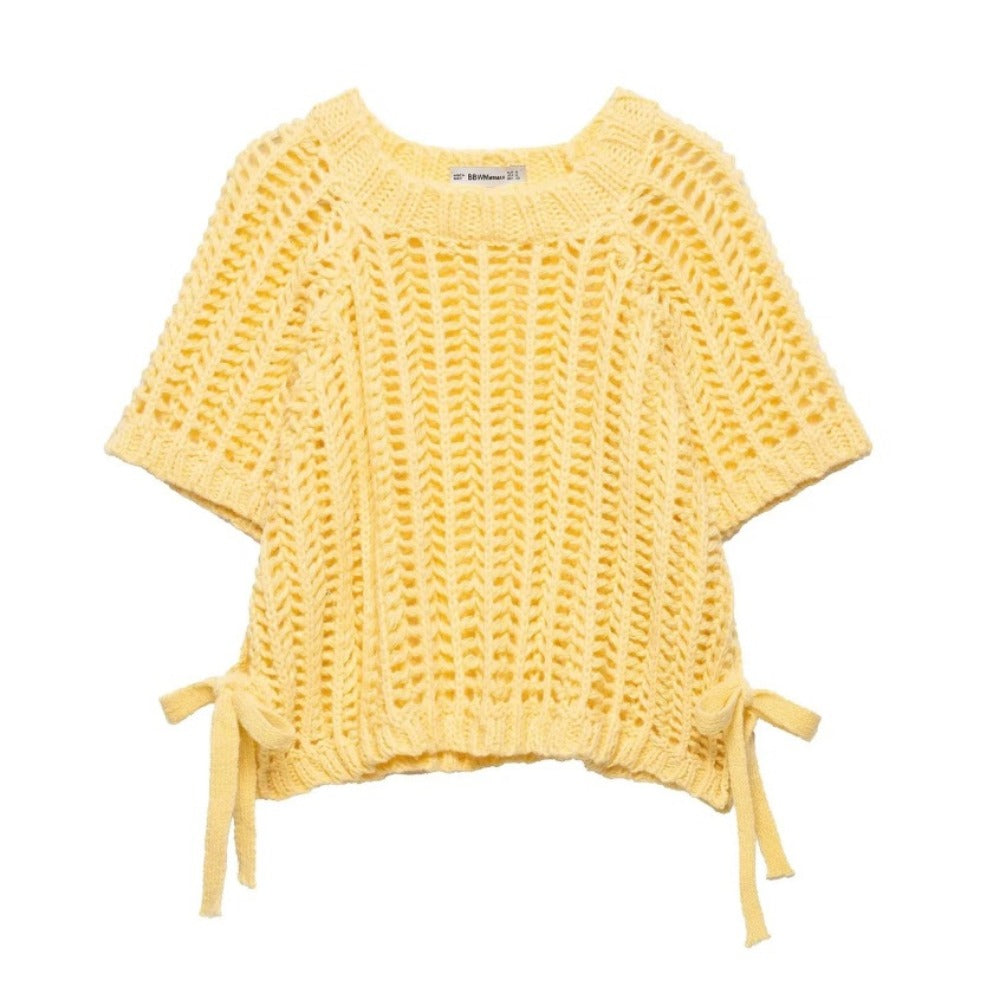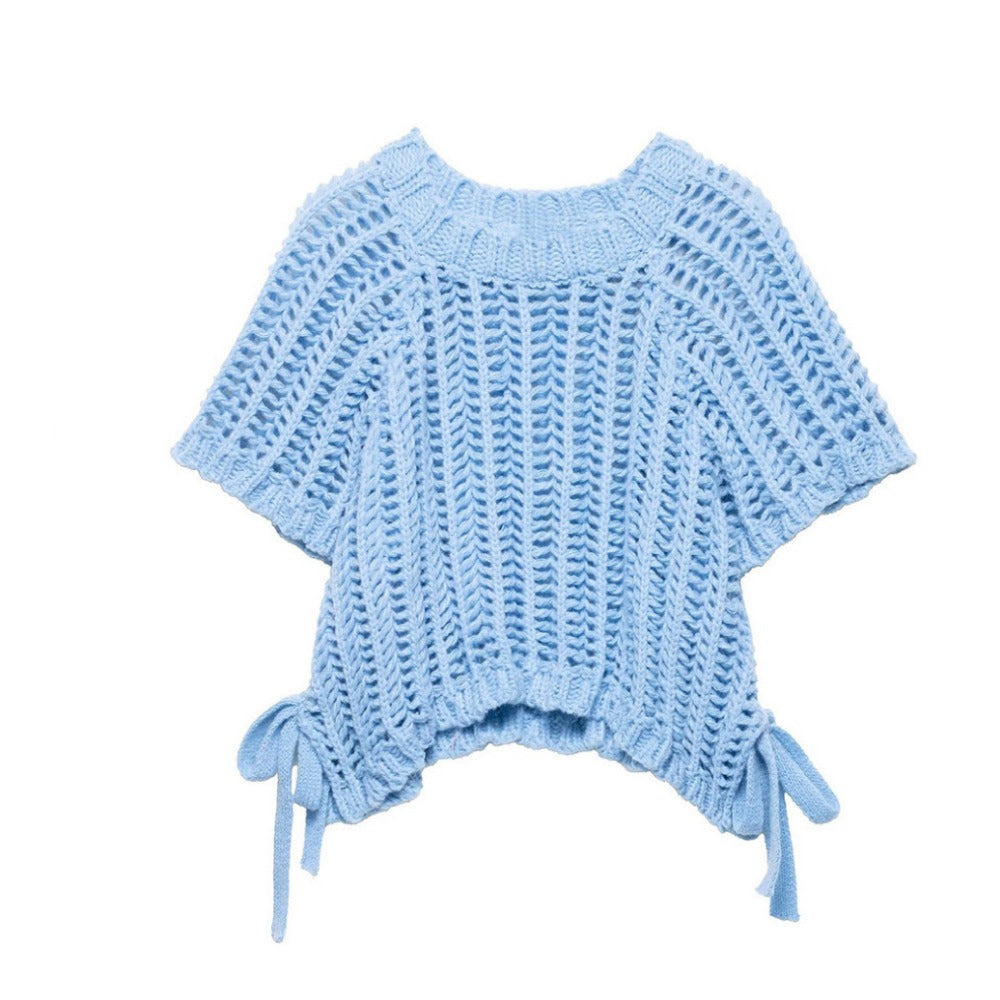 Add a fresh and versatile piece to your wardrobe with this multi color crochet knit short sleeve top. Designed with breathable open-knit fabric and side tie details, it combines comfort and effortless style for everyday looks.