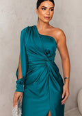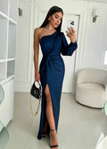Turn every entrance into a statement with the Women’s Party One-Shoulder Dress | Maxi. Designed to capture attention through elegant asymmetry, this dress blends modern artistry with timeless allure. The flowing satin-like fabric, draped sleeve, and sleek leg slit create a silhouette that moves beautifully — perfect for evening events, galas, or any occasion where sophistication shines.