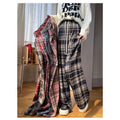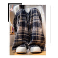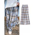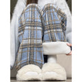Plaid Wide-Leg Fleece-Lined Pants with Drawstring for Women - Miriam