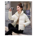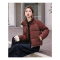 Stay warm and stylish with this brown puffer jacket designed with a practical high collar. Its lightweight yet insulated design makes it a perfect outerwear piece for chilly days while maintaining comfort and ease of movement.