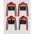 Make a bold statement with this red and black leather biker jacket for women. Designed with striking color contrast and a sleek fit, it combines durability with a modern edge for versatile styling.