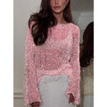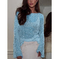 Sheer Knit Sequin Long Sleeve Top for Women - Nina