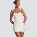 Turn heads with this white sleeveless mini dress with square neck for women. Designed with a flattering fit and minimal detailing, it offers a chic look that’s versatile for a range of outfits.