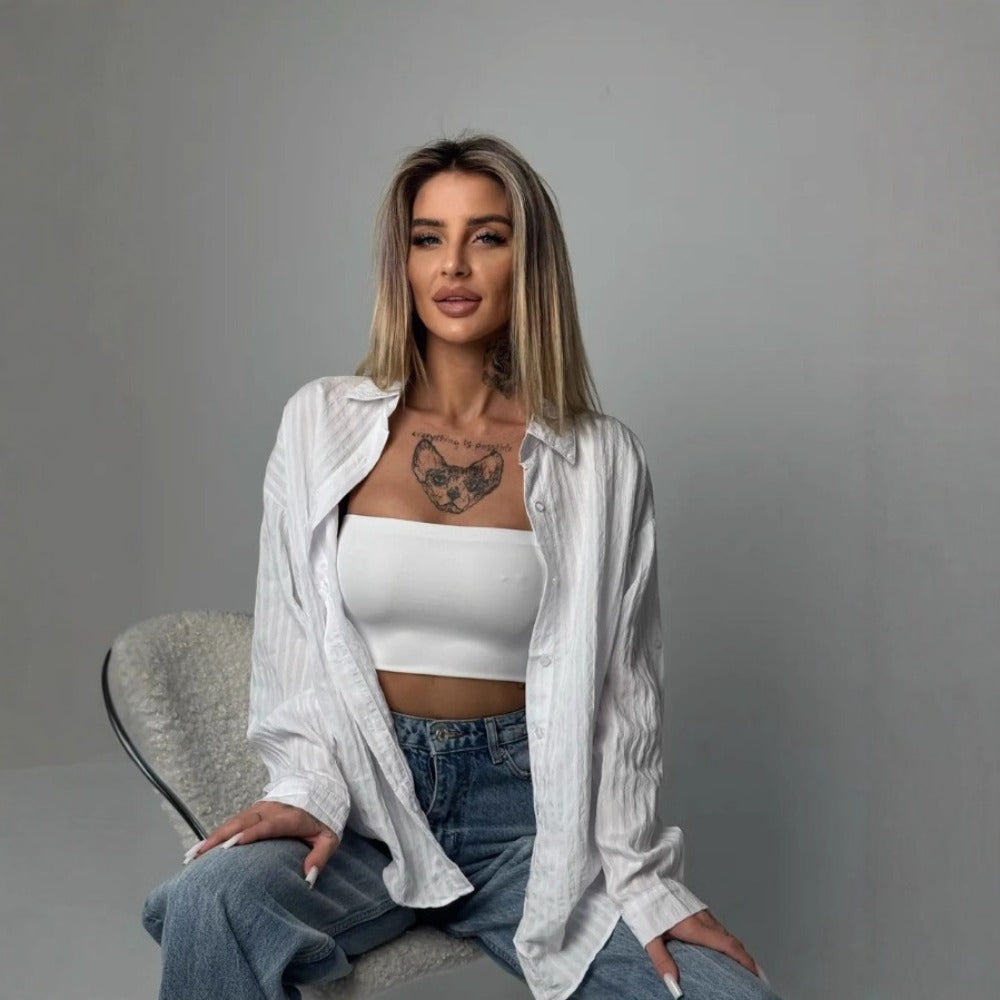 Add a versatile staple to your wardrobe with this white striped button up shirt. Designed with long sleeves and a relaxed fit, it combines classic style with modern ease for everyday wear.