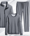 Stay active and comfortable with this gray tracksuit set designed for men. Made for both performance and leisure, this set includes a jacket, sweatshirt, and pants that combine function with modern style.