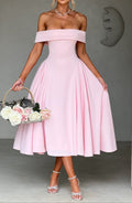 Chic & Elegant Design – The Miranda midi dress is perfect for chic evenings, romantic date nights, and special occasions. Featuring a flattering Bardot neckline with pleat detail, this dress combines sophistication with a touch of glamour, while the voluminous side panels and tulle skirt create a full, feminine silhouette.