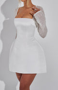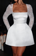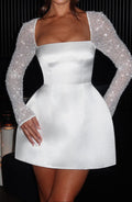 Playful & Ultra-Cute Design: The Dolly mini dress combines a satin body with stretch mesh long sleeves embellished with beads, creating a doll-like, whimsical look. Perfect for parties or special occasions, this dress is both fun and elegant.