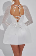 Chic Design Details: Featuring a lace-up back for a customizable fit, a tie at the back neck, and bust and bodice darts, the Dolly dress ensures a flattering silhouette. The ivory color adds a timeless and feminine touch.