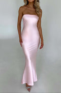Romantic & Playful Design – The Angelina Maxi Dress embodies soft girl elegance with a strapless silhouette and a voluminous frilled high-low skirt.