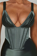 Luxurious & Comfortable Fit: The corseted bodice with built-in boning cinches at the waist, accentuating your curves while providing support and comfort. The bias-cut satin drapes beautifully, ensuring a flattering and graceful fit.