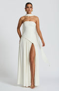 White Strapless Maxi Dress with Side Slit for Women - Maddalena