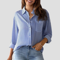 Bring sophistication to your everyday routine with the Women’s Striped Blouse | Commuting, designed for effortless elegance from office hours to after-work outings. Crafted from a breathable cotton-linen blend, this blouse combines softness, structure, and flow for a polished yet relaxed feel. Its timeless striped pattern adds a refined touch, making it a perfect staple for professional and casual looks alike.